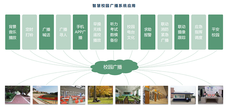 校園廣播系統(tǒng)主要用于學校日常的背景音樂播放、信息播放、廣播通知、找人等使用功能。在緊急情況下,校園公共廣播可以配合消防廣播系統(tǒng),針對事故發(fā)生現(xiàn)場,快速播報緊急疏散語音,提示相關區(qū)域的人員迅速逃離現(xiàn)場。